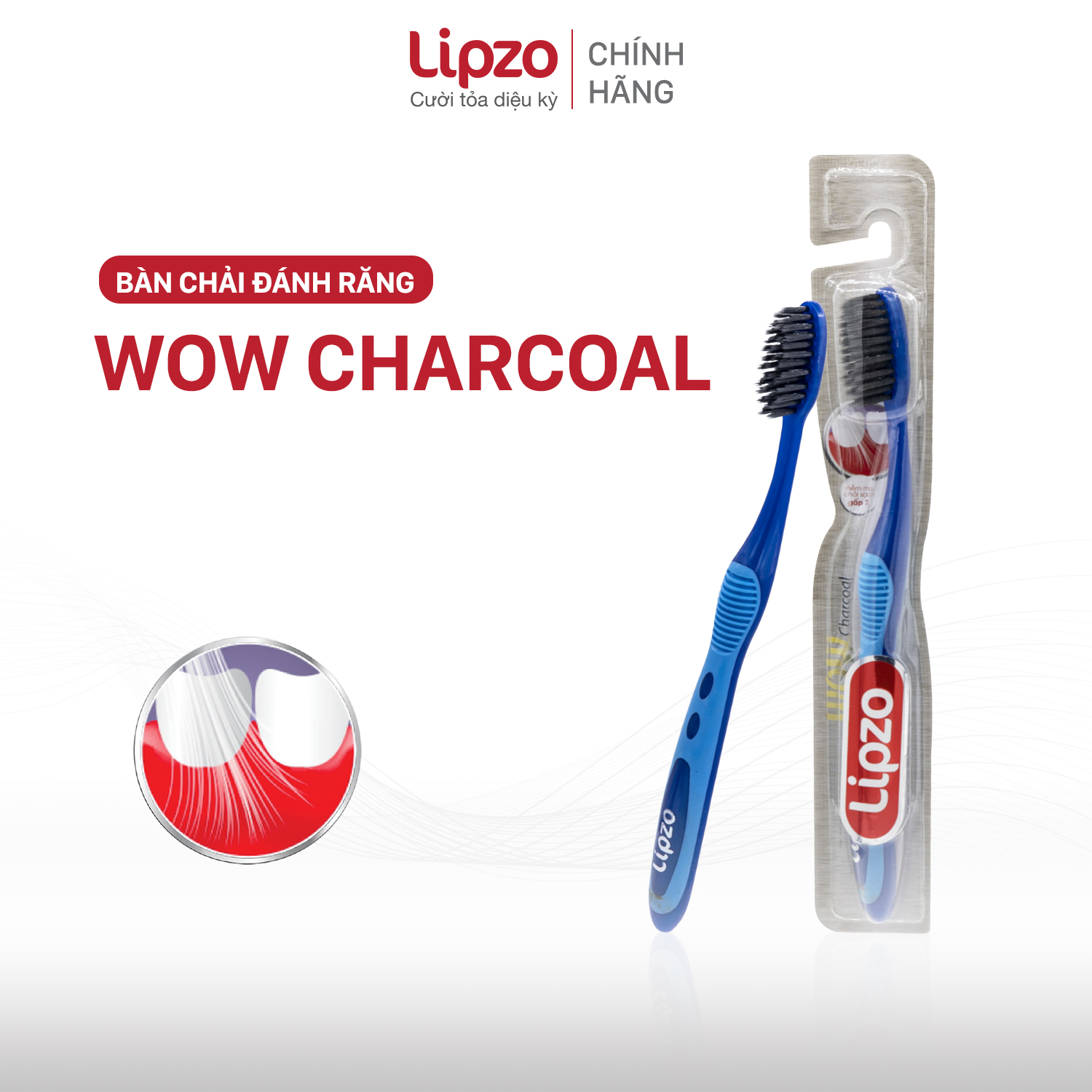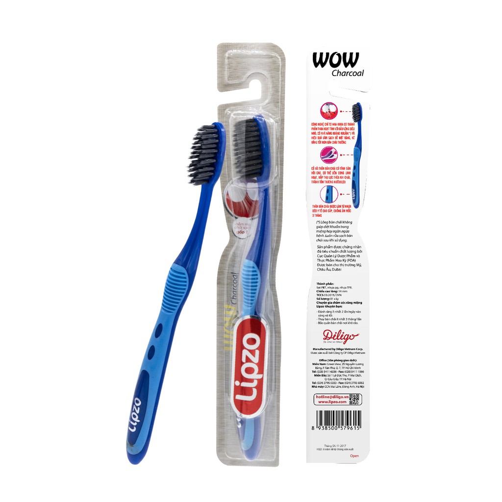 - Bàn chải đánh răng Lipzo Wow Charcoal dành cho nam giới và nữ giới mọi lứa tuổi.