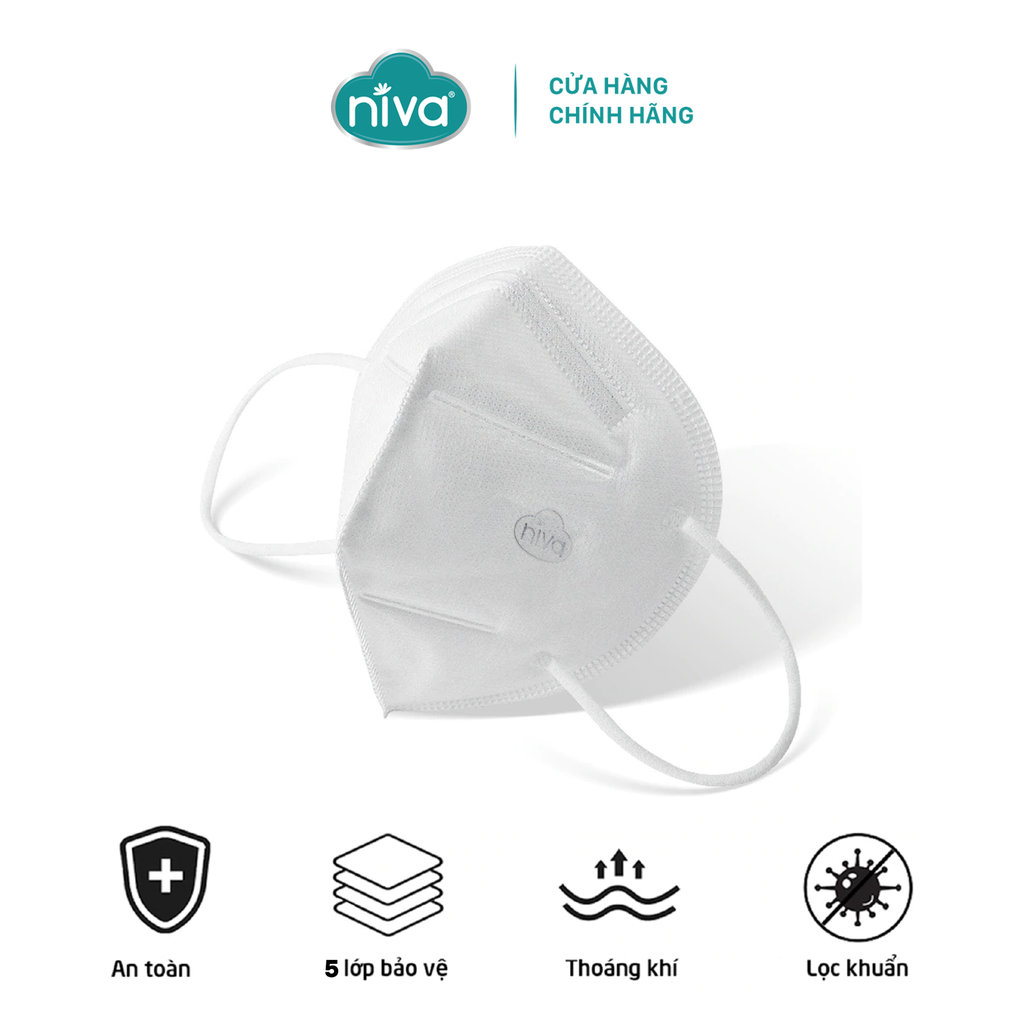 - Cấu tạo: khẩu trang N95 Niva được cấu tạo từ 4 lớp: 2 lớp vải không dệt, 1 lớp màng lọc Melt-Blown và 1 lớp màng lọc khí chống ẩm. Kết cấu đa lớp chắc chắn bền đẹp, không bí, không gây khó thở, kháng khuẩn và lọc bụi mịn, không khí ô nhiễm hiệu quả.