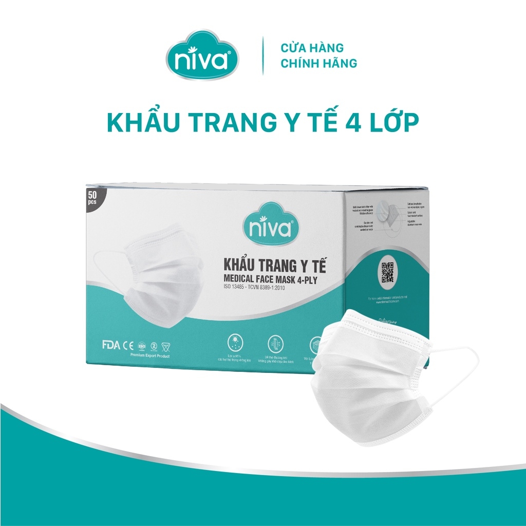 COMBO 10 HỘP KHẨU TRANG Y TẾ 4 LỚP NIVA (HỘP 50 CÁI)