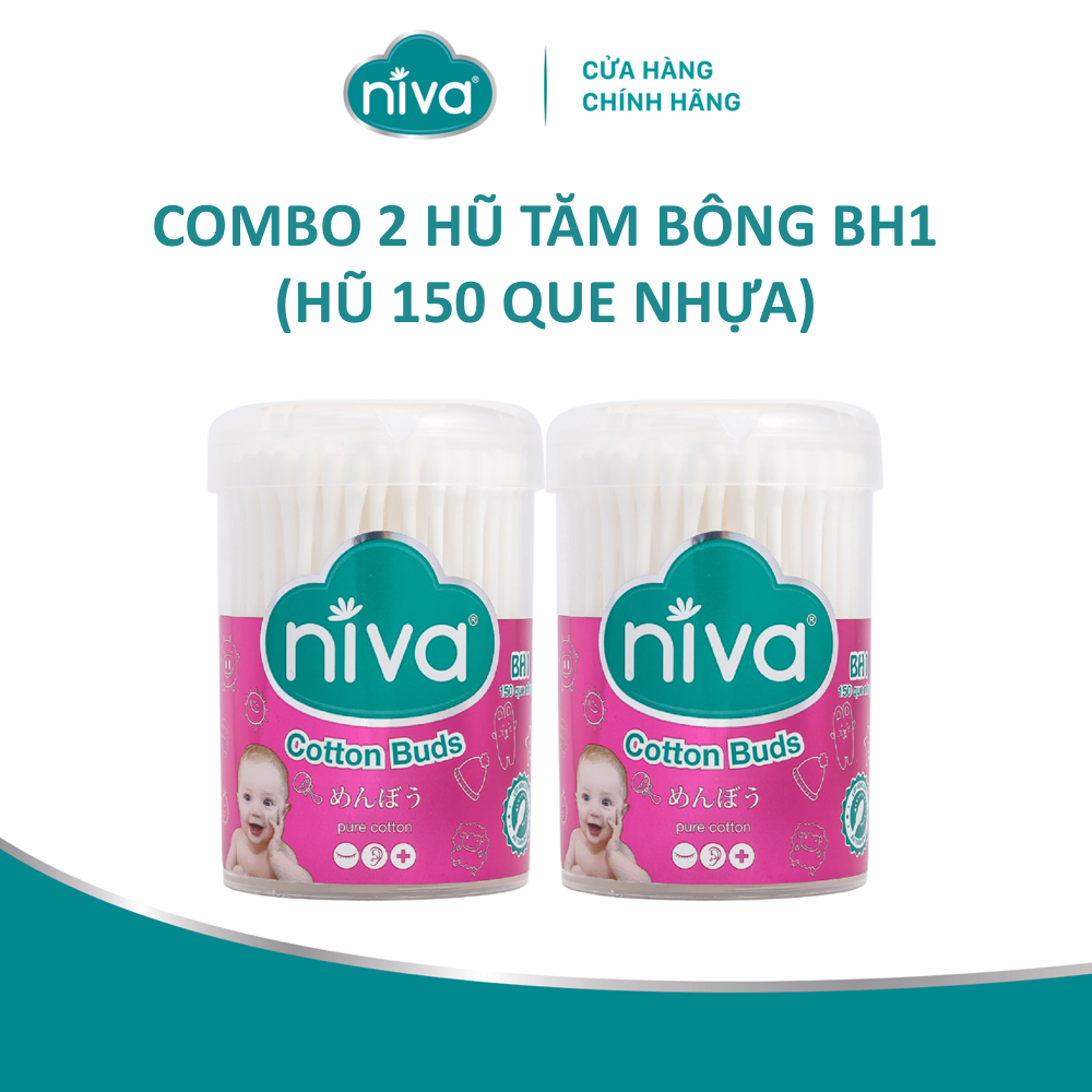 COMBO 2 HŨ TĂM BÔNG TRẺ EM NIVA BH1 (HŨ 150 QUE NHỰA)