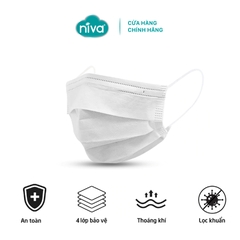 Khẩu trang y tế 4 lớp người lớn Niva ứng dụng công nghệ Meltblown với khả năng kháng khuẩn và lọc khói bụi hiệu quả. Thiết kế linh hoạt, mang lại sự thoải mái tối đa khi sử dụng.