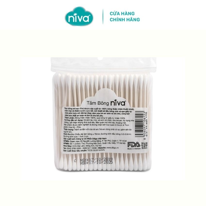 - Sử dụng công nghệ sản xuất hiện đại và khép kín của Nhật Bản, tăm bông Niva là sản phẩm duy nhất được sản xuất tại Việt Nam đạt chứng nhận FDA (Hoa Kỳ)