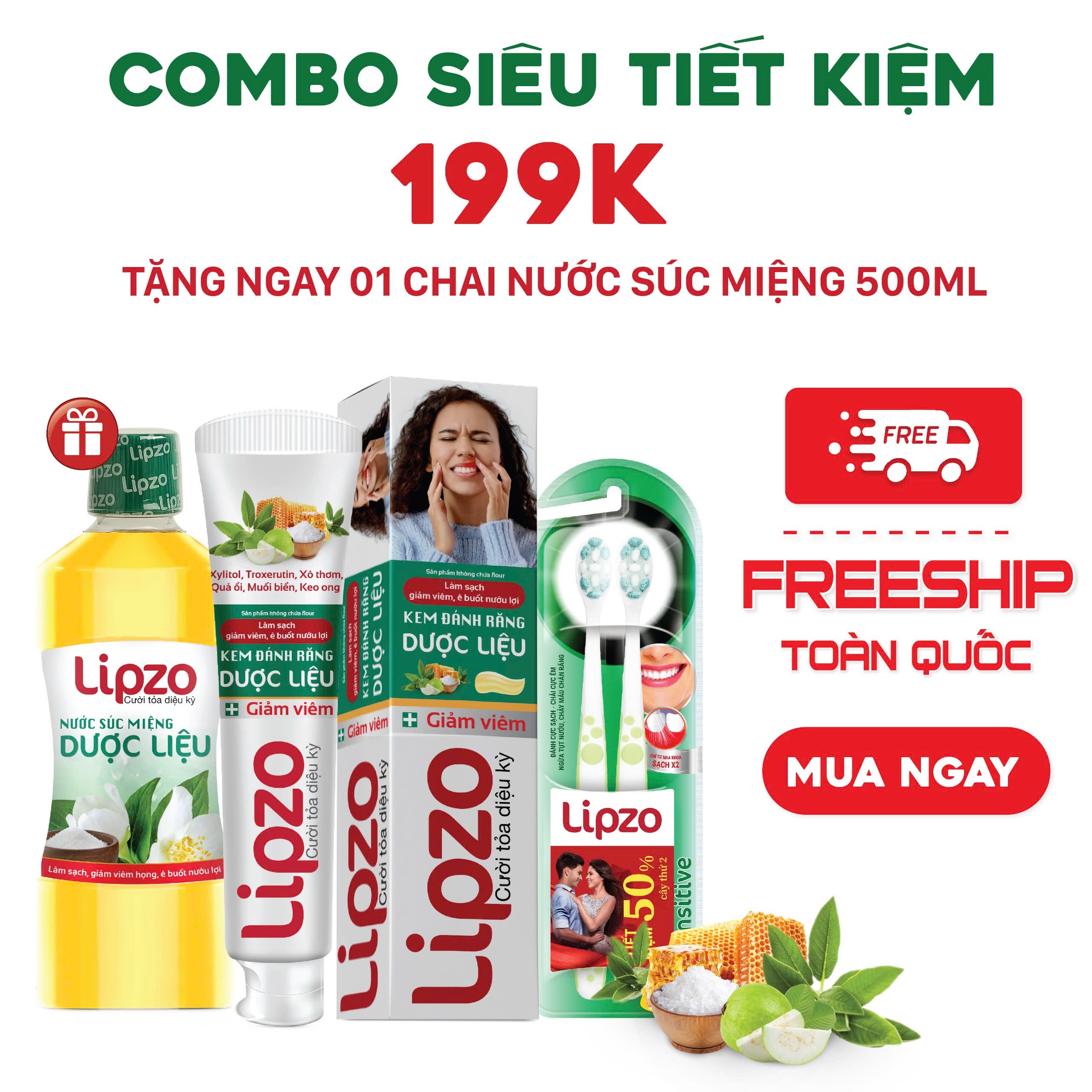 ⏰ Số lượng combo ưu đãi có hạn. Đừng bỏ lỡ cơ hội nhận quà tặng giá trị và trải nghiệm bộ sản phẩm chăm sóc răng miệng cao cấp từ Lipzo với mức giá siêu tiết kiệm 199.000đ!